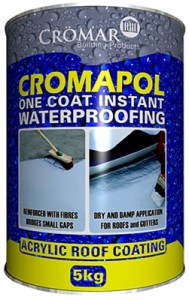 Due to the high level of fibres in Cromapol the coating will bridge small gaps and require only a one coat application to give instant waterproofing. Cromapol is available in Grey, White, Black and Clear.